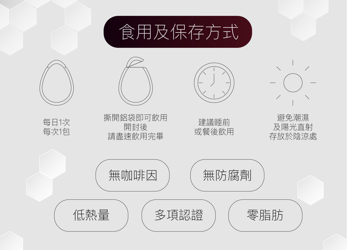 每日睡前食用 1 包;腸胃敏感者建議飯後食用較佳。