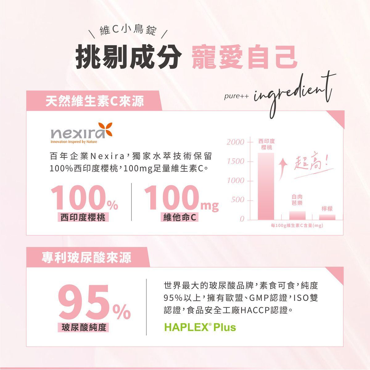 ✔ 嚴選法國百年品牌 Nexira:專注天然有機植物成分,完整保存西印度櫻桃營養,讓好成分與維生素C一起發揮最大效果。